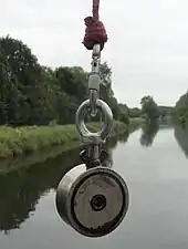 Magnet fishing, also called magnetic fishing, is searching in outdoor waters for ferromagnetic objects available to pull with a strong neodymium magnet.[1]