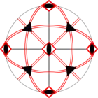 The following diagrams show the stereographic projection of most of the magnetic point groups onto a flat surface. Not shown are the grey point groups, which look identical to the ordinary crystallographic point groups, except they are also invariant under the antisymmetry operation.