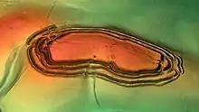 Bronze objects such as pins, jewellery, and rivets have been found on the site, dating from the Middle Iron Age. As there was no local source of tin and copper ore, this demonstrates long distance trade, probably with the southwest. Although bronze was not produced at Maiden Castle, there is evidence of it being reworked.[46] Good quality iron ore could be found in the surrounding area, but the hill fort does not appear to have been a centre for iron production in this period; this is not unusual as very few hill forts in Berkshire, Dorset, Hampshire, and Wiltshire exhibit traces of iron production.[47] Early in the Iron Age, most of the pottery found at Maiden Castle was produced locally – within about 15 km (9.3 mi) – however later on sources further afield became more important, and by the Late Iron Age 95% of the pottery came from the area around Poole Harbour, more than 35 mi (56 km) away.[48] This long-range trade has been taken as evidence for increasing relationships with groups of people over large areas and the emergence of tribal identities.[49] Although Sharples states that developed hill forts such as Maiden Castle are not towns and cannot be considered truly urban because they are so closely related to agriculture and storage,[50] Cunliffe and fellow-archaeologists Mark Corney and Andrew Payne describe developed hill forts as "town-like settlements", a form of proto-urbanism.[51]