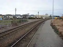 The first proposal for a line resembling the present day Main North Line was made in 1861. A proposal for a line linking Christchurch and Blenheim was put before the Marlborough Provincial Council in April 1861. Later that year, the national government passed the Picton Railway Act [1] in October, approving a line from Picton to the Wairau River under the auspices of the Marlborough Provincial Council.[2] The political authorisation did not translate into actual construction and no work on building the line was undertaken in the 1860s. The Canterbury Provincial Railways began to extend their 1,600 mm (5 ft 3 in) broad gauge network north from Christchurch through Kaiapoi (29 April 1872),[3] Southbrook (July 1872,[4] the extension to Rangiora being delayed by lack of chairs),[5] Rangiora (5 November 1872)[6] Balcairn (3 November 1875)[7] and Amberley (9 February 1876),[8] reaching Waipara on 29 September 1880[9] - by this stage, the Canterbury network had been re-gauged to the national gauge of 1,067 mm (3 ft 6 in) narrow gauge and acquired by the central government.