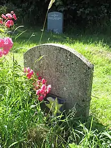 Lowry is buried in the churchyard of St John the Baptist in Ripe.[13] Lowry wrote in his 1940 poem "Epitaph": "Here lies Malcolm Lowry, late of the Bowery, whose prose was flowery, and often glowery. He lived nightly, and drank daily, and died playing the ukulele,"[3] but the epitaph does not appear on his gravestone.