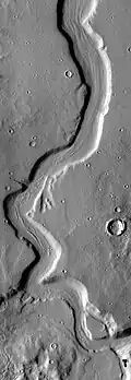 The Mamers Valles are a set of channels in a long, winding canyon in the north of Mars.[1] They cover 1000 km, cutting through the cratered uplands of the Arabia Terra, from the Cerulli crater to the Deuteronilus Mensae near the edge of Mars' vast northern lowlands. Through their midsection, they average a width of 25 km and a depth of 1200 meters.
