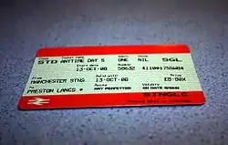 Passengers travelling into Manchester from outside the Greater Manchester county are not permitted to use rail tickets to travel around the city centre on the Metrolink. As a consequence the destination on the orange rail tickets is stated as Manchester STNS. The Manchester Metrolink is a locally funded transport system which receives no national subsidy from central government. National Rail passengers can use the free buses outside stations to travel around the city centre.[6]