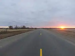 The entire length of Provincial Trunk Highway 2 is a rural, two-lane highway traveling through the relatively flat prairies of southern Manitoba.[5]