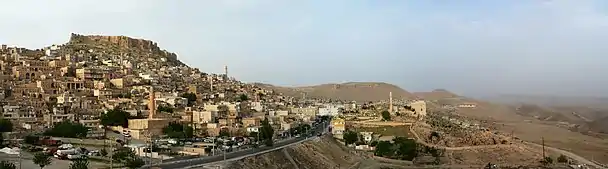 Mardin (Kurdish: Mêrdîn;[2] Arabic: ماردين; Syriac: ܡܪܕܝܢ, romanized: Merdīn;[3][4] Armenian: Մարդին) is a city and seat of the Artuklu District of Mardin Province in Turkey.[5] It is known for the Artuqid architecture of its old city, and for its strategic location on a rocky hill near the Tigris River.[6]