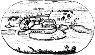 The origins of the village go back to the foundation of Cistercian monastery in 1228 by the region's Slavic ruler, Duke of Pomerania, Barnin I the Good (c. 1217/1219 – 13 November 1278) from the Griffin dynasty (ducis Slauorum et Cassubie). In 1228, Cistercian nuns arrived and founded an abbey in Marienfließ (also Marienfliess, Marienflies).[2] After the Protestant Reformation, the nunnery was secularized in 1569, but its purpose, to harbour unmarried or widowed noble women from the Duchy of Pomerania, continued as a Lutheran convent (damsels' foundation) for noble women. One of these noble women was Sidonia von Borcke, famous for her trial for witchcraft in 1620.[3]