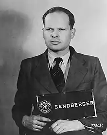 ![]() Sandberger's mugshot for the Nuremberg Military Tribunal (1 March 1948) | |