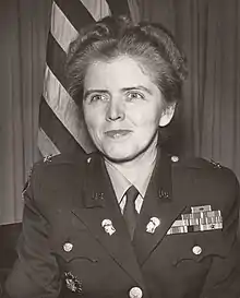 In 1943, as a captain, she commanded the first women's battalion to go overseas. She served as director of WAC personnel attached to the 8th and 9th Air Forces, and by 1945, as a lieutenant colonel, she commanded all WAC personnel in the European theater.