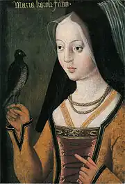 Mary of Burgundy (French: Marie de Bourgogne; Dutch: Maria van Bourgondië; 13 February 1457 – 27 March 1482), nicknamed the Rich, was a member of the House of Valois-Burgundy who ruled a collection of states that included the duchies of Limburg, Brabant, Luxembourg, the counties of Namur, Holland, Hainaut and other territories, from 1477 until her death in 1482.[1][2][3]