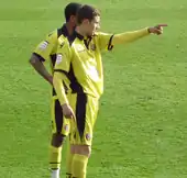 The following season, Lowton started Sheffield United's opening day fixture, away to Cardiff City, but was issued with a straight red card. Despite this setback, he returned to the first-team picture and was rewarded with a new contract at the end of September.[12] Lowton continued a run of substitute appearances and rewarded United's faith by scoring his first senior goal in mid-October, netting in a 3–3 home draw with Burnley.[13] Lowton played regularly for the remainder of the season, scoring four goals in all, but couldn't prevent the club from slipping to relegation.[14][15]