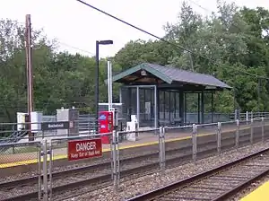 Meadowbrook station is a regional rail stop along the SEPTA West Trenton Line. It is located at Mill Road & Lindsay Lane in Abington, Pennsylvania. The station has off-street parking. In FY 2013, Meadowbrook station had a weekday average of 141 boardings and 129 alightings.[2] The station building was destroyed by an early morning fire on April 18, 1995 and was replaced by the bus shelter type of facility that currently serves as the waiting area.[3]
