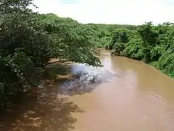 The Meia Ponte River (Portuguese, Rio Meia Ponte[3]) is one of the most important rivers in the state of Goiás, Brazil. Its source lies 60 km north of the city of Goiânia and it flows through that city in a southern direction joining the Paranaíba River just downriver of Cachoeira Dourada Dam. The Paranaíba River marks the border between the states of Goiás and Minas Gerais. The Meia Ponte's basin furnishes water for 2 million people, fifty percent of the population of the state, and a large part of the economy depends on it.