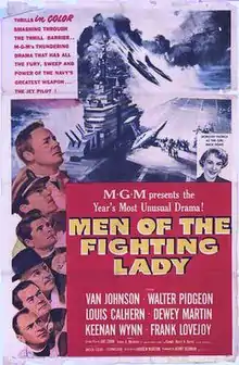 Men of the Fighting Lady is a 1954 American war drama film directed by Andrew Marton and starring Van Johnson, Walter Pidgeon, Louis Calhern and Keenan Wynn. The screenplay was written by U.S. Navy Commander Harry A. Burns, who had written a Saturday Evening Post article, "The Case of the Blinded Pilot", an account of a U.S. Navy pilot in the Korean War, who saves a blinded Navy pilot by talking him down to a successful landing. Men of the Fighting Lady was also inspired by another Saturday Evening Post article, "The Forgotten Heroes of Korea" by James A. Michener. The original music score was composed by Miklós Rózsa. It is also known as Panther Squadron. It is not to be confused with the 1944 documentary The Fighting Lady, which was mainly filmed aboard the USS Yorktown (CV-10).
