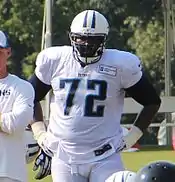 On March 14, 2014, Oher signed a four-year, $20 million contract with the Tennessee Titans.[29] Oher started eleven games for the Titans, but he was placed on injured reserve on December 13 after missing the previous two games due to a toe injury. Pro Football Focus graded Oher as the 74th best tackle out of 78 for the 2014 season.[30] The Titans released Oher on February 5, 2015.[31]