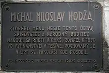 Plaque dedicated to Michal Miloslav Hodža in Liptovský Mikuláš