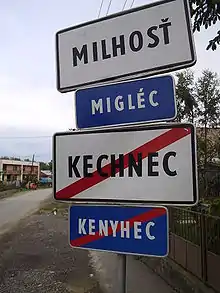 Milhosť (German: Mitterdeutschdorf or Mühlgast; Hungarian: Migléc, formerly Miglécnémeti, until 1899 Miglécz) is a village and municipality in Košice-okolie District in the Košice Region of eastern Slovakia. It is situated 21 km from Slovakia's second biggest city, Košice. Milhosť is surrounded by two neighbouring villages Kechnec and Seňa. Moreover, it is a border crossing village between Hungary (Tornyosnémeti) and Slovakia (Milhosť).