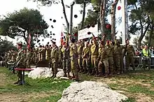 In all service branches, the beret is "bashed" to the right and a badge or insignia is worn above the left eye. In the army, all units can wear them with certain units wearing unique ones.[13] In the navy, the beret is an optional item[14] and in the air force, it is only worn by certain units.[15]