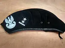 The beret was found particularly practical as a uniform for armored vehicle crews; the British Royal Tank Regiment adopted a black beret which would not show oil stains and was officially approved in 1924.[6] German Panzertruppen also adopted a black beret or Schutzmütze in 1934, which included a rubber skull cap as head protection inside.[7]