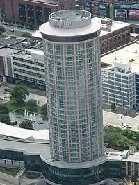 ![]() Tower I of the Millennium Hotel complex as seen from the observation deck of the Gateway Arch. | |