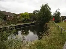 The stream leaves the Cornmill Stream to flow through the Waltham Abbey Site of Special Scientific Interest within the Royal Gunpowder Mills site, before flowing through late 20th century housing developments. After passing under the B194 road at Highbridge Street the stream merges with the River Lea to flow under the A121 to join the River Lee Flood Relief Channel below the town of Waltham Abbey.