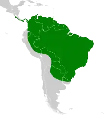 Subspecies M. c. cordata is found in southwestern Nicaragua, western Costa Rica, and most of Panama, and in mainland South America from Colombia east through Venezuela and the Guianas, south through Ecuador and Peru east of the Andes, and across Brazil north of the Amazon River. The Nicaragua records are only since 2008, and there are also scattered eBird records as far north as Guatemala and Belize. Off the north coast of the South American mainland, it occurs on Aruba, Trinidad, and Tobago, and has visited Bonaire and Curaçao as a vagrant. The nominate M. c. chimachima is found from eastern Bolivia south through Paraguay into northern Argentina and east through northern Uruguay and Brazil south of the Amazon River. Its range overlaps with that of the chimango caracara in southern Brazil, northern Argentina, Paraguay, and Uruguay.[16][5][17][7]