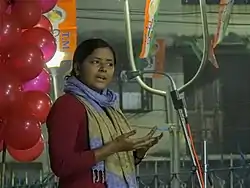 Minakshi Mukherjee started her activism through Students' Federation of India in her college days.[10][11] She was later inducted into the Democratic Youth Federation of India (DYFI) local committee in 2008.[3][8] Her leadership and public speaking skills helped her rise within DYFI, and by 2018, she became the state president of DYFI in West Bengal.[9][3][12] In the same year, she also joined the state committee of the Communist Party of India (Marxist) in West Bengal.[3]