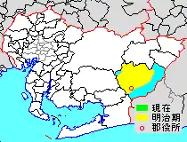 * yellow - areas formerly within the district borders during the early Meiji period