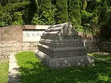 Hong commanded a squadron for the journey to Bengal.[146] Ma Huan was among the personnel in this squadron.[150] It is not known when they exactly detached from the treasure fleet for Bengal.[note 11] They sailed directly from Semudera to Bengal.[151] In Bengal, they traveled in order to Chittagong, Sonargaon, and the capital Gaur.[152] Afterwards, they sailed directly from Bengal to Calicut.[151][152] Zheng's fleet had departed from Calicut for Hormuz by the time Hong's squadron arrived in Calicut.[151] Ma writes that Hong sent seven men to accompany a ship[note 12] from Calicut bound for Mecca after he observed that Calicut was sending men there.[153][154] He adds that it took a year for them to go and return and that they had purchased various commodities and valuables, including giraffes, lions, and ostriches.[153][154] Hong's tomb, located in Nanjing, contains an inscription that substantiates the visit to Mecca by the squadron commanded by Hong.[154] It is likely that Ma was one of the people who visited Mecca.[note 13][155][156] Dreyer (2007) suggests that Hong may also have been involved with other destinations such as Dhofar, Lasa, Aden, Mogadishu, and Brava.[157]