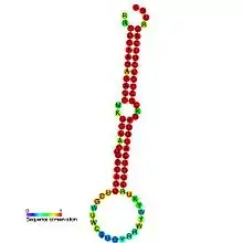 In molecular biology, mir-46 (MI0000017) and mir-47 (MI0000018) are microRNA expressed in C. elegans from related hairpin precursor sequences.[1] The predicted hairpin precursor sequences for Drosophila mir-281 (MI0000366, MI0000370)[2][3] are also related and, hence, belong to this family. The hairpin precursors (represented here) are predicted based on base pairing and cross-species conservation; their extents are not known. In this case, the mature sequences are expressed from the 3' arms of the hairpin precursors.