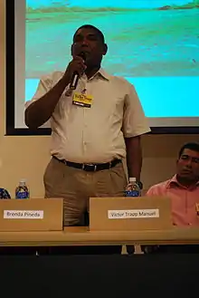 In April 2009 a group of Miskito elders declared independence from Nicaragua under the name Community Nation of Moskitia.[28] This declaration has not been met with any formal response from the government of Nicaragua nor has it been recognised by any other state. The independence movement is led by Hector Williams, who is described as the leader of the Miskito and uses the title Wihta Tara, or Great Judge. They cited as reasons for their renewed desire for independence the serious economic problems damaging their traditional fishing industry and the recent election of Daniel Ortega as president of Nicaragua. Many of them had fought as Contras against him during the Nicaraguan Civil War and still opposed him. Thus, many Miskito who supported the independence movement were those who had suffered greatly economically.[28]