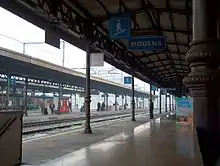 Modena railway station (Italian: Stazione di Modena) is a railway station serving the city of Modena, in the region of Emilia-Romagna, northern Italy. The station opened in 1859 and is located on the Milan–Bologna railway, Verona–Modena railway and Modena–Sassuolo railway. The train services are operated by Trenitalia and Ferrovie Emilia Romagna.