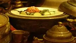 The bright scarlet dye known as xingxingxue 猩猩血 "gibbon's blood" was not used by the Chinese, but observed in imported Western textiles. Although the source for this tradition of the bloody dye remains untraced, Edward H. Schafer notes a Western analogue in "St. John's blood", a variety of the red dye kermes, which derives from the insect kermes.[40] The Tang dynasty chancellor Pei Yan wrote,