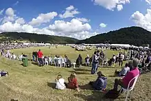 In 1876 the show was held in the town's newly established cattle market in Chippenham Fields.[1] The show was then held annually (firstly in October, but then eventually moved to August – taking up its now traditional date of the last Thursday in August) up until the First World War. The show was restarted in 1919 when it was renamed the Monmouthshire County Show.[2] The show was not held during the period of the Second World War, but from 1946 until 2006 it was held each year on the grounds of Vauxhall Fields. Nor was it held in 1956 or 2001 due to outbreaks of foot and mouth disease, nor 2020 on grounds of COVID-19 pandemic.[1]