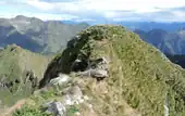 The mountain is located on the water divide between the valleys of the Strona and the Mastallone (the latter a side valley of Valsesia). The main ridge goes on southwards with Passo dei Rossi (2,056 m), a mountain pass dividing Monte Capio from the neighbouring Cima dei Rossi (2,134 m), while northwards the chain continues with Bocchetta di Rimella (1,924 m) and then with the Altemberg. Administratively the summit of Monte Capio is the tripoint where the borders of the comunes of Rimella (VC), Cravagliana (VC) and Valstrona (VB) meet. Close to the main elevation of the mountain stands a subsummit with a small cross and a metal bell. A sharp saddle connecting it with the actual summit is equipped with a metal cable, in order to facilitate the passage. A trigpoint of the IGM marks the main summit, where also stands a metal box with a register.[2]