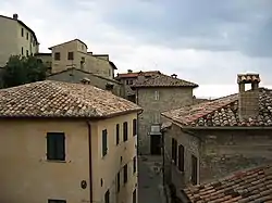 Montone is a walled medieval village with a small industrial and housing estate surrounding the walled town center. The town is the origin of the Fortebracci condottieri family, whose most famous member was Braccio da Montone.