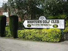 In 1929, Moortown hosted the second Ryder Cup matches, the first to be played in Great Britain.[1] About two thousand spectators saw America gain a narrow lead[2] before the Great Britain team won singles on the final day and thus the competition by a score of 7–5 points.[3]
