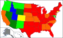 The Pew Forum on Religion & Public Life published a survey of 35,556 adults living in the United States that was conducted in 2007.[6] The 2007 survey, conducted by Princeton Survey Research Associates International (PSRAI), found 1.7% of the U.S. adult population self identified themselves as Mormon.[7] The table below lists a few significant findings, from the survey, about Mormons. Note: some less populated states were combined in this survey. These include:Montana-Wyoming,D.C.-Maryland, North & South Dakota, New Hampshire-Vermont, and Connecticut-Rhode Island. The racial and ethnic composition of the U.S. membership is predominantly white[8] with a lower percentage of blacks when compared to the U.S. average.[9]