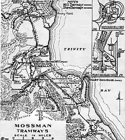 The district was served by two separate 2-foot (610 mm) gauge tramway systems.[17] Both at one time handled passengers and general goods, as well as sugar cane. Mossman district owes its present prosperity to these tramways which pioneered the first reasonable transport in the neighbourhood, for trafficable roads followed later.