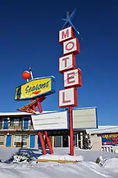 To many small towns bypassed by Interstate highways, embracing 1950s nostalgia and historic restoration brings in badly needed tourism dollars to restore sagging local economies. Many vintage motels, some dating to the cabin court era of the 1930s, have been renovated, restored, and added to the U.S. National Register of Historic Places or to local and state listings.[52] While a handful were repurposed as either low-income housing, boutique hotels, apartments, or commercial/office space,[53] many were simply restored as motels.