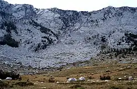 ![]() View of Orjen with peaks Veliki kabao (right) and Vučji zub (left) | |