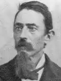 Lee was arrested on November 7, 1874.[43] Dame, Philip Klingensmith, Ellott Willden, and George Adair, Jr. were indicted and arrested while warrants to pursue the arrests of four others who had gone into hiding (Haight, Higbee, William C. Stewart, and Samuel Jukes) were being obtained. Klingensmith escaped prosecution by agreeing to testify.[44] Brigham Young removed some participants including Haight and Lee from the LDS Church in 1870. The U.S. posted bounties of $5000 ($115711[45] in present-day funds) each for the capture of Haight, Higbee, Stewart, and Klingensmith.[46]