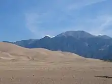 Colorado, New Mexico, Utah, and Arizona have other smaller desert lands, part of the Colorado Plateau. The Painted Desert is located in northern and northeastern Arizona, and the San Rafael Desert is located in eastern Utah. New Mexico has other desert lands located in the northern and northwest. Colorado has large desert lands on the colorado plateau in the northwestern, western, and southern parts of the state. These desert lands in Colorado are located in and around areas such as Royal Gorge, Great Sand Dunes National Park, Pueblo, the San Luis Valley, Cortez, Dove Creek, Delta, Canyons of the Ancients National Monument, the Roan Plateau, Dinosaur National Monument, Colorado National Monument, and the Grand Mesa.[6] The San Luis Valley is the largest high valley desert in the world.