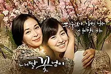 My Daughter the Flower (Korean: 내 딸 꽃님이; RR: Nae Ddal Kkotnimi; lit. "My Daughter Kkotnim") is a South Korean television drama series about a mother and daughter who are not blood related. The series aired on SBS from November 14, 2011 to May 18, 2012 on Mondays to Fridays at 19:20 with 131 episodes. It starred Jin Se-yeon, Jo Min-su, Park Sang-won, Choi Jin-hyuk, Lee Ji-hoon and Son Eun-seo.