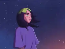 The visual tells a story of a young woman "coming into her own".[15] In it, an animated Billie symbolizes a relationship she's walking away from. She wanders alone through a Studio Ghibli-inspired, psychedelic forest in the rain while contemplating about her future.[16][29][65] When the second verse comes around, the sun comes out and the forest begins to bloom, as trees engulf Eilish and lift her up to the sky.[26][66][67]