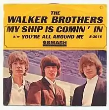 "My Ship Is Comin' In" is a song written by Joseph Brooks (credited as "Joey Brooks"), which was first a song for the American soul singer Jimmy Radcliffe in 1965 and was later recorded and released by the American pop group The Walker Brothers as their fourth single that same year. Outside the US and Canada, the song's title was "My Ship Is Coming In". The accompaniment was directed by Ivor Raymonde. The song appeared as the opening track on the group's debut US studio album Introducing the Walker Brothers.