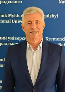 Mykhaylo Zagirnyak (Ukrainian: Загірняк Михайло) is a Ukrainian scientist working in the fields of electromechanics and education administration. He is a Full Member (academician) of National Academy of Pedagogical Sciences of Ukraine, Honored Scientist and Engineer of Ukraine, Laureate of the State Prize of Ukraine in the field of science and technology, Laureate of the State Prize of Ukraine in the field of education, and a Doctor of Science (Eng) Professor. He is also the Rector of Kremenchuk Mykhailo Ostrohradskyi National University.[2]