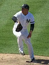 On December 20, 2020, Cortés signed a minor league contract to return to the New York Yankees organization.[27] Cortés began the 2021 season with the RailRiders, and the Yankees promoted him to the major leagues on May 30.[28] Throughout the 2021 season, Cortés became a favorite of Yankees fans, as his signature mustache, along with his unique style of pitching and many productive appearances garnered him much praise, along with the moniker "Nasty Nestor."[29] He finished the year with 93 innings pitched over 22 games (14 started) to go along with a 2.90 ERA and 103 strikeouts.[23]