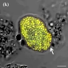 | CLSM image of a microcolony of NC10 bacteria (Ca. Methylomirabilis sinica)[1] | |