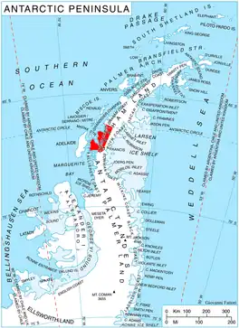 - British Antarctic Territory. Scale 1:200000 topographic map. DOS 610 Series, Sheet W 67 66. Directorate of Overseas Surveys, Tolworth, UK, 1978.