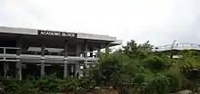 The law school is spread over 55 acre (22 hectare), divided into five precincts. The first is the Administrative Block which is adjoining the Academic Block. The Academic Block consists of the classrooms, conference halls, the library, the internet centre, a moot court hall, and research centres. The residential block consists of five separate hostels for boys and girls each. The entire campus is WiFi network enabled.[1] The stadium forms the fourth while the law school dining hall forms the fifth. Miscellaneous structures include the commemorative 'Keerthi Stambh' and a replica of 'The Thinker' by Auguste Rodin. An auditorium, with a seating capacity of close to 500, has also been completed.[2]